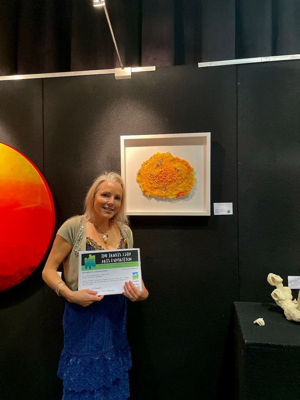 On my second time entering the the Trusts Awards Art Exhibition I was ecstatic to win the 2nd prize placing for my 'NZ bark & Lichen study' sculptural embroidery. I also received a merit award for my 'Sunburst Lichen' sculptural embroidery.