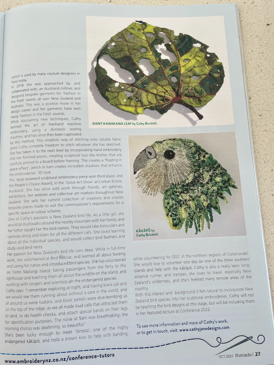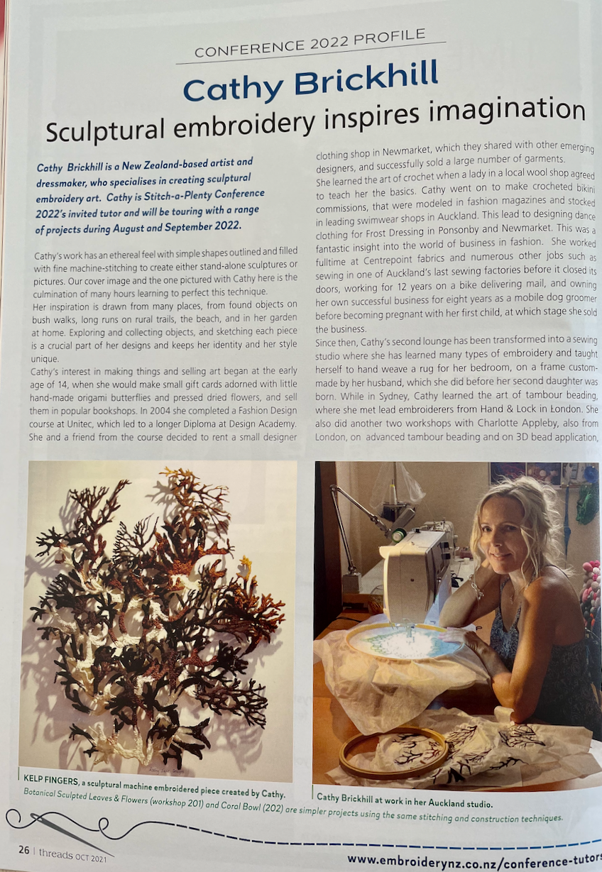 Threads magazine is the official publication from The Association of New Zealand Embroiderers' Guilds that features the best of New Zealand embroidery, news from Guilds all over New Zealand and special features on different embroiderers and techniques.