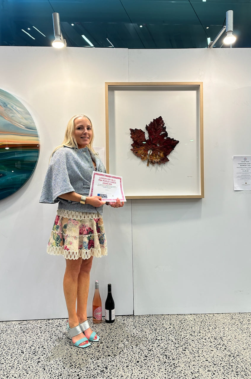 I was overwhelmed and so proud to be awarded people's choice award for my large sculpted vineyard leaf 3d artwork. There was a landslide of votes for this piece, and it stood out from the other artworks that were chosen for the Top 10 awards event. This piece was called 'Impermanence.'