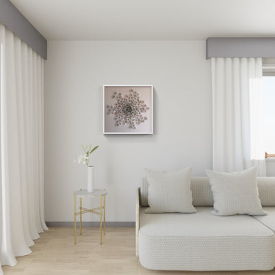 Measures: 78cm width x 78cm height x 4.5cm depth. Framed and ready to be hung.